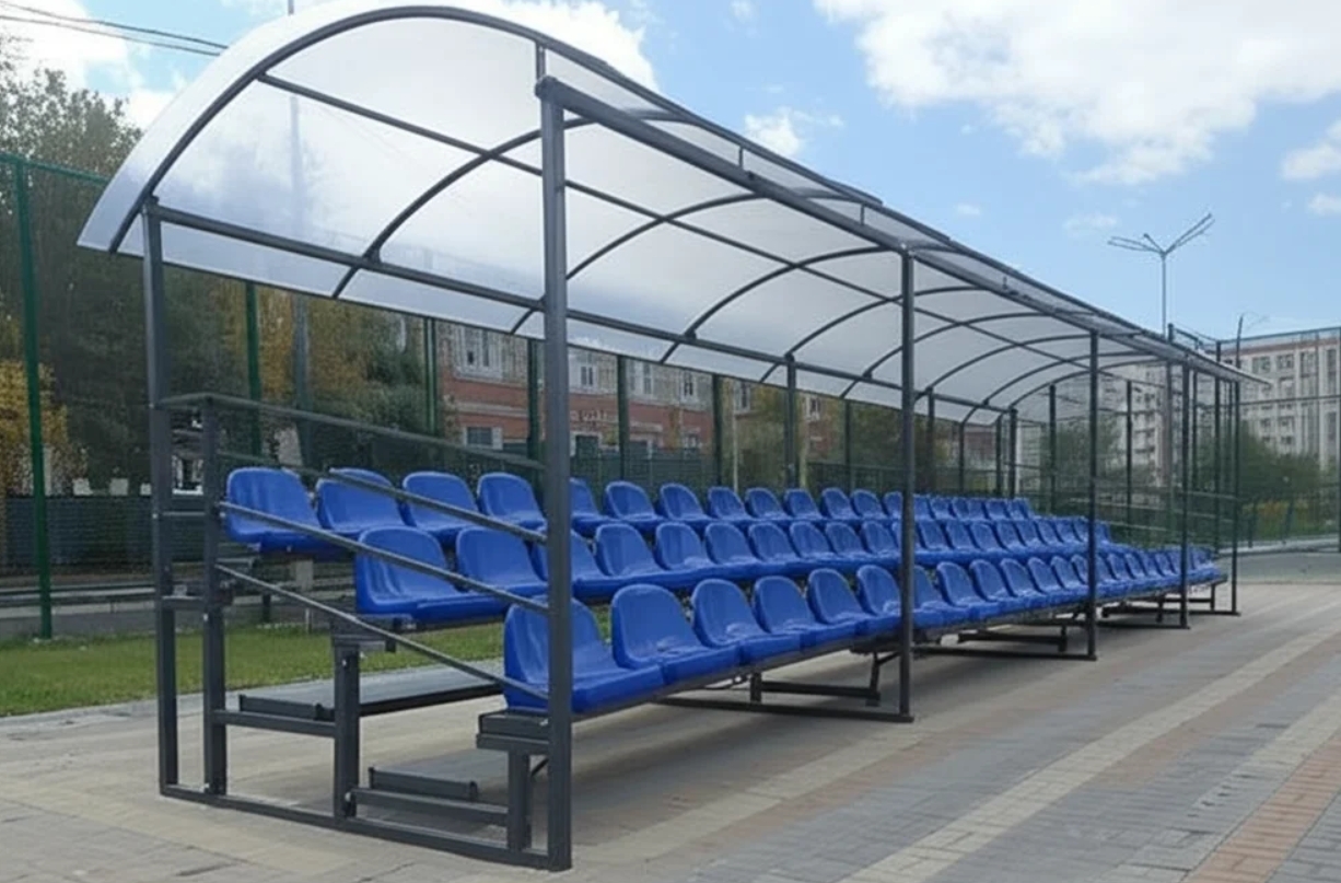 - Переносные или временные трибуны применяются на объектах с регламентированным использованием, требуют минимального монтажа и позволяют быстро организовать дополнительное место для зрителей.